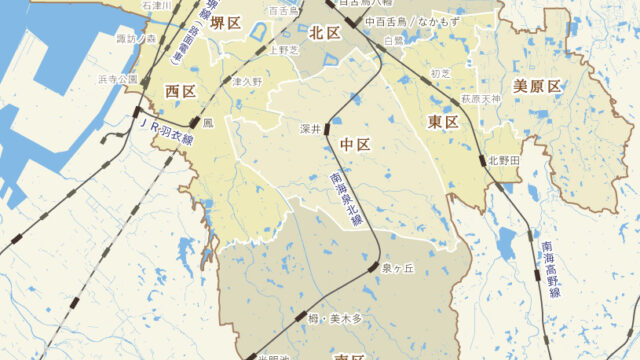 津久野駅を使うのは、主に堺市西区・堺・中区に住む場合です。区の情報は「堺市●区の住みやすさ・住み心地」からどうぞ。